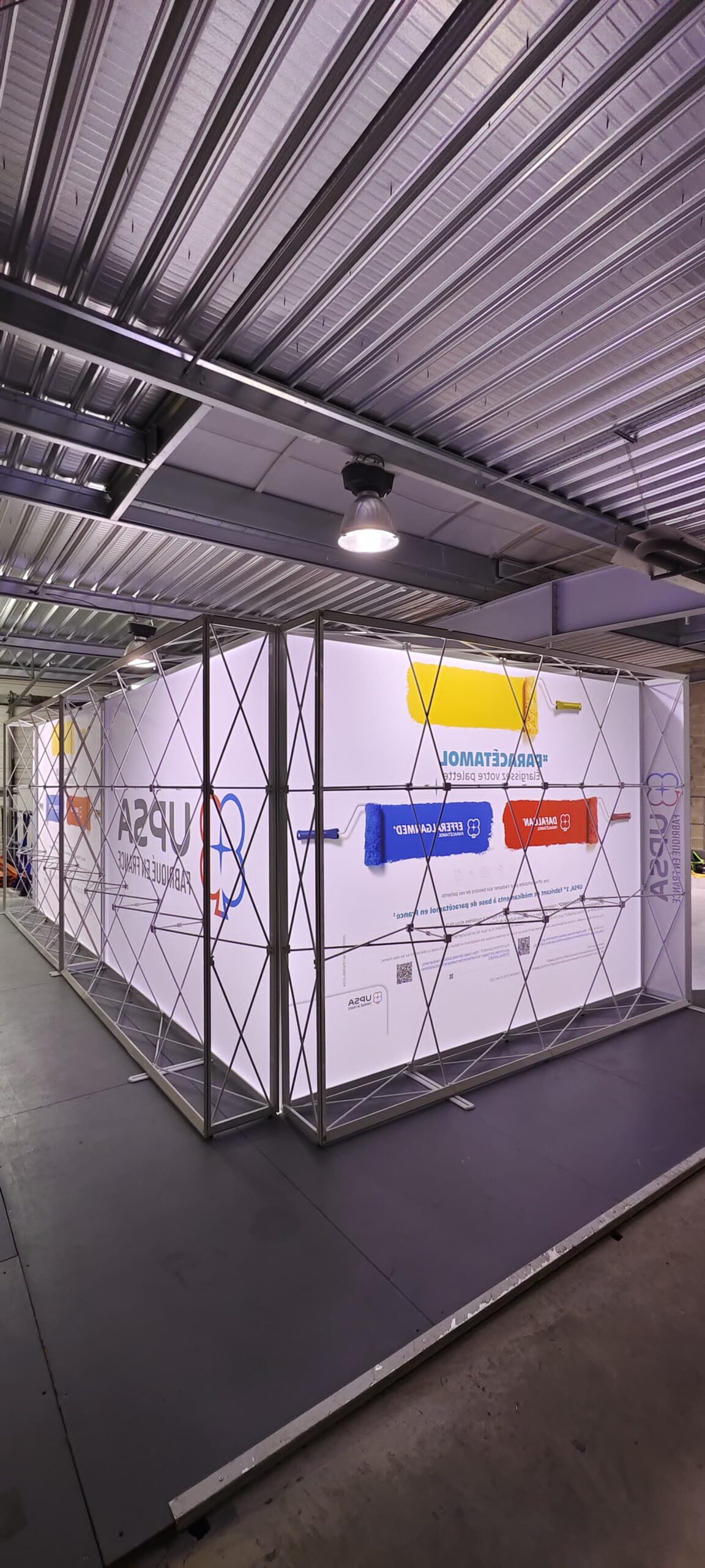 Modulable, transportable et rapide à monter, il repose sur une structure pop-up type araignée : un système ingénieux qui se déploie en quelques secondes. Sans outils, ni compétences techniques, l’installation devient un jeu d’enfant. Les barres de renfort se fixent sur les bords, le visuel s’insère dans la rainure : tout est pensé pour une mise en place intuitive.